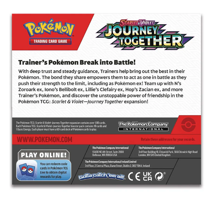 Dive into the Paldea region with the Pokémon TCG: Scarlet & Violet - Journey Together Booster Box! This exciting set marks the return of Owner's Pokémon, a nostalgic favourite among collectors and players.
